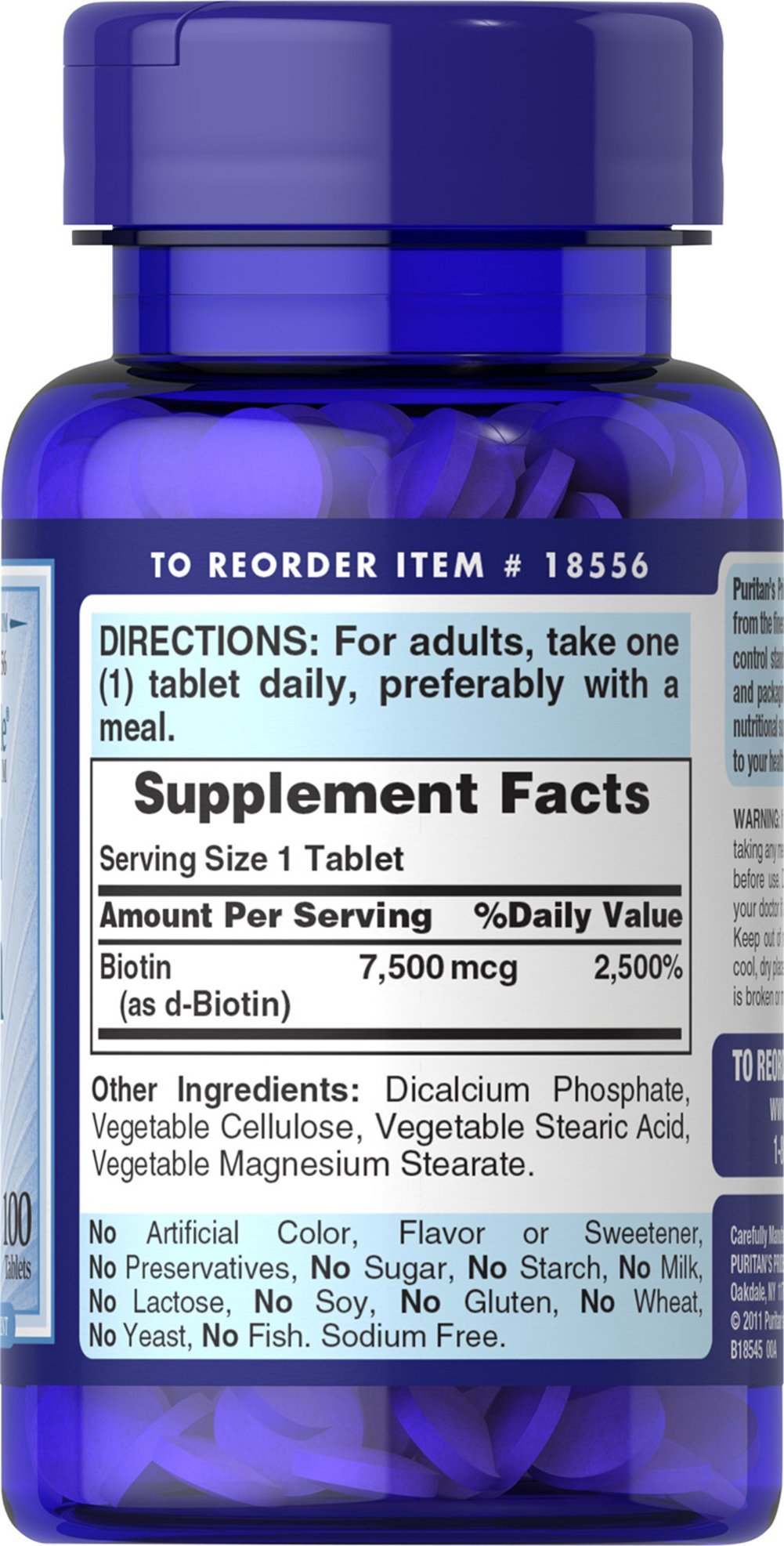 Puritan's Pride Biotin 7,500 mcg 100 Tablets
