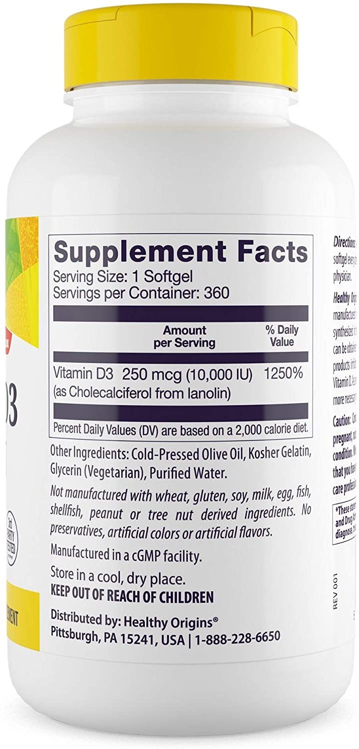 Vitamin D3 10,000IU Healthy Origins 360 softgels
